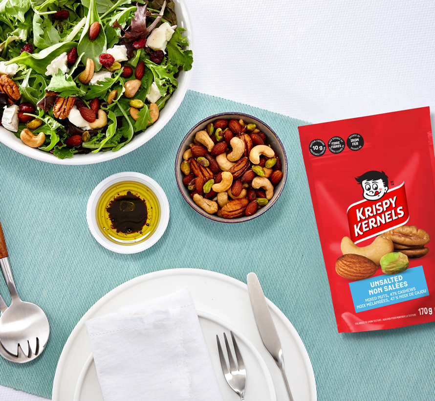 Whether it's to keep you going until dinner, provide a health boost, satisfy your crunchy cravings, jazz up your recipes or to simply share the pleasure, our different products are as healthy as they are delicious. Our nuts, almonds, peanuts and other products are fresh and tasty as a snack or in a recipe. Krispy Kernels products ... the solution for all occasions.