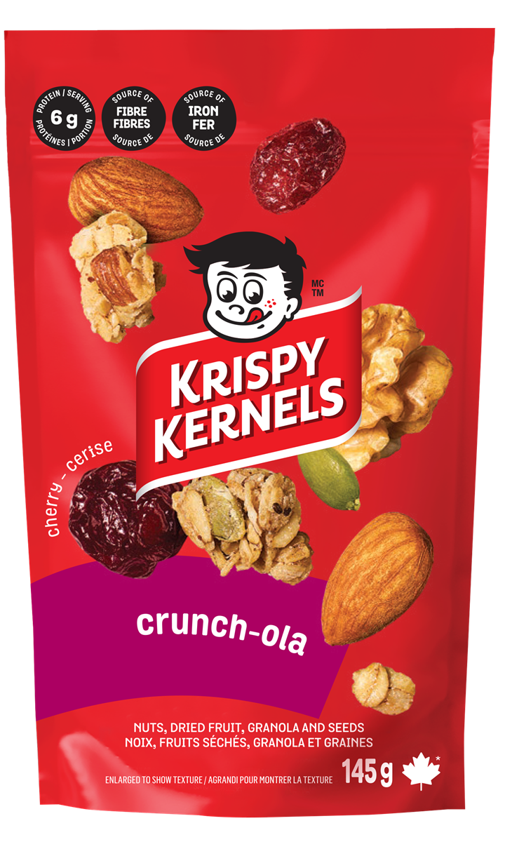 Amandes, céréales croquantes, canneberges, graines de citrouilles, cerises et noix de grenoble.